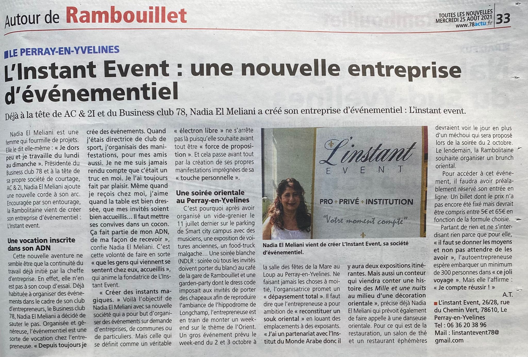 Depuis 2021, L’Instant Event conçoit et orchestre des dispositifs événementiels qui mettent l’Humain au centre. À l’origine de l’agence, Nadia El Meliani : une communicante reconnue pour sa capacité à fédérer exposants, partenaires et dirigeants autour de projets ambitieux, du premier contact au suivi post-événement.